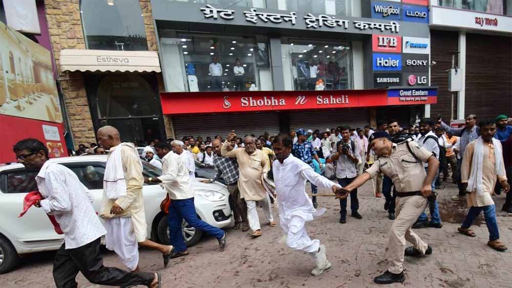 प्रदर्शन कर रहे राशन विक्रेताओं पर पुलिस की लाठीचार्ज कार्रवाई