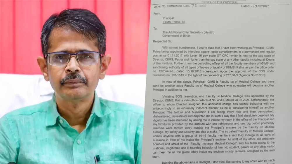 पटना स्थित आईजीआईएमएस के प्रिंसिपल ने आत्महत्या की धमकी दी, स्वास्थ्य मंत्री लिखा पत्र