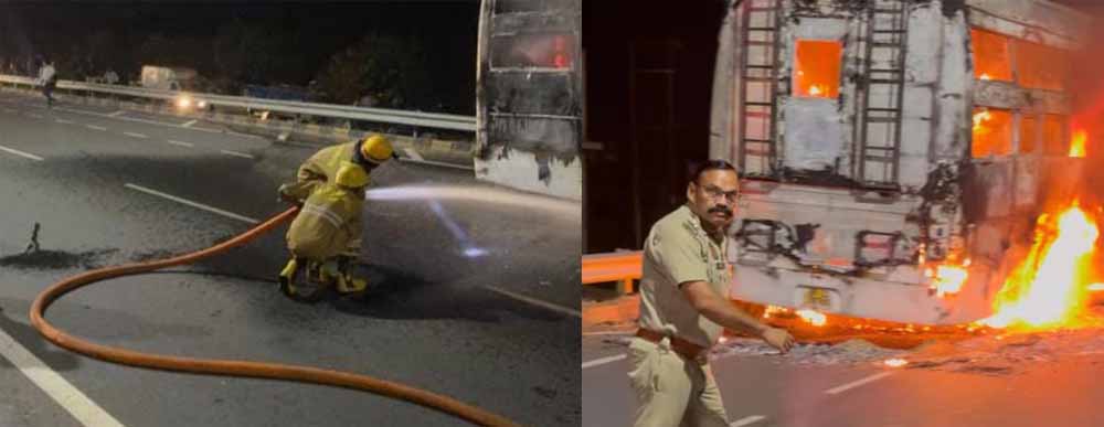 प्राइवेट वोल्वो बस बनी आग का गोला, बाल- बाल बची 60 यात्रियों की जान