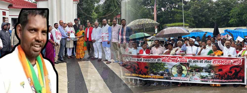 झारखंड में आदिवासी संगठनों ने कई आपराधिक मामलों में वांछित सूर्य नारायण हंसदा की सुरक्षाकर्मियों के साथ कथित मुठभेड़ में हुई मौत के विरोध में बीते शनिवार को राजभवन तक मार्च निकाला। यह जुलूस रांची के जिला स्कूल मैदान से निकाला गया और राजभवन पर समाप्त हुआ, जहां प्रदर्शनकारियों ने कथित मुठभेड़ की सीबीआई जांच, हांसदा के परिवार के लिए सुरक्षा और मुठभेड़ में शामिल पुलिसकर्मियों के खिलाफ कार्रवाई की मांग की।