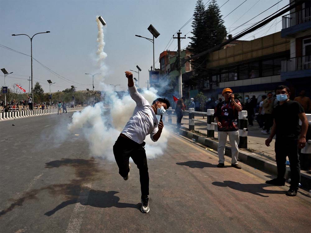 नेपाल पुलिस ने राजतंत्र समर्थक प्रदर्शनकारियों को तितर-बितर करने के लिए वॉटर कैनन का इस्तेमाल किया। पुलिस ने खाली गोलियां भी चलाईं। तिनकुने क्षेत्र में स्थिति नियंत्रण से बाहर हो गई, जहां हजारों प्रदर्शनकारियों ने 'राजा आओ देश बचाओ', 'भ्रष्ट सरकार नीचे जाओ' और 'हमें राजतंत्र वापस चाहिए' जैसे नारे लगाए। कई प्रदर्शनकारी अपने हाथ में नेपाल का राष्ट्रीय ध्वज और पूर्व राजा ज्ञानेंद्र शाह की तस्वीरें लिए हुए थे। ये लोग जोर-जोर से नारेबाजी कर रहे थे और सड़कों पर दौड़ते हुए पत्थरबाजी की।