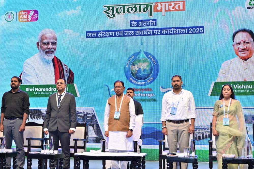 मुख्यमंत्री  विष्णु देव साय ने ‘सुजलाम भारत’ के अंतर्गत राजधानी रायपुर स्थित ओमाया गार्डन में जल संरक्षण एवं जल संवर्धन विषय पर आयोजित कार्यशाला को संबोधित करते हुए यह बात कही। इस अवसर पर उन्होंने जल कलश पर जल अर्पित कर जल संचयन का संदेश दिया।