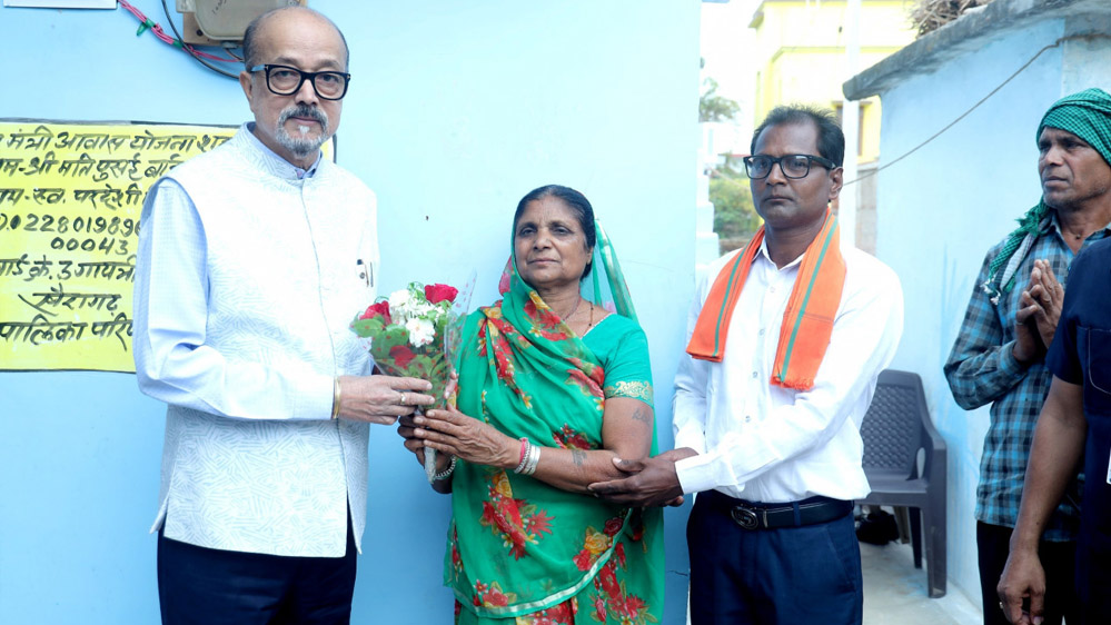 रायपुर : राज्यपाल रमेन डेका ने खैरागढ़ में प्रधानमंत्री आवास योजना की हितग्राही से भेंट की