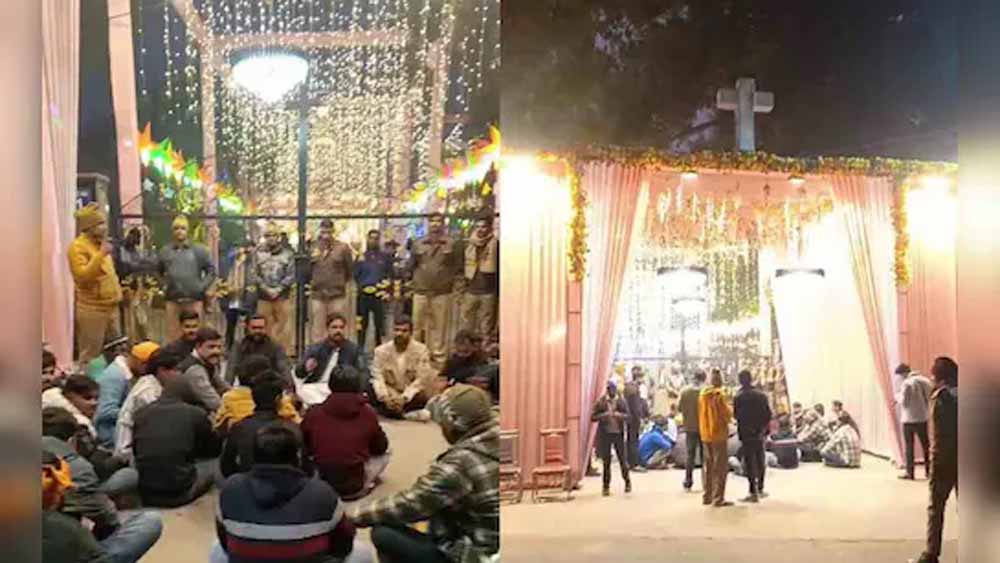 चर्च के बाहर हनुमान चालीसा पाठ और जयकारे, क्रिसमस पर बजरंग दल का प्रदर्शन