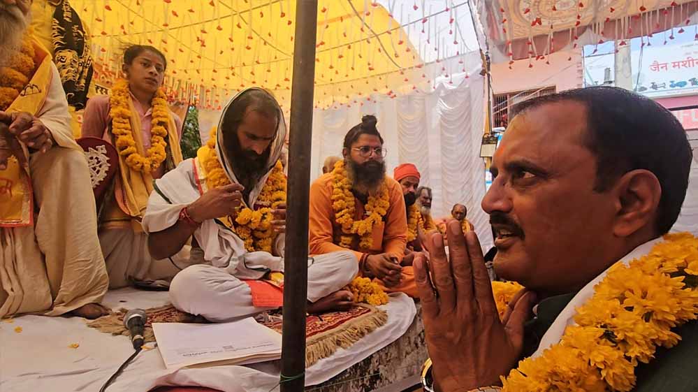 ग्वालियर इटावा हाईवे को सिक्स लाइन बनाने को लेकर अनशन कर रहे संतों के पास नवकरणीय ऊर्जा मंत्री राकेश शुक्ला पहुंचे