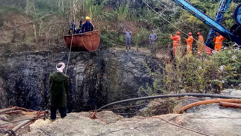 एक अधिकारी ने बताया कि खदान में फंसे हुए खनिकों की तलाश में बचाव अभियान सुबह फिर से शुरू हुआ। तलाश के छठे दिन एक और मजदूर का शव बरामद किया गया है। मृतक की पहचान दीमा हसाओ को कलामाटी के गांव नंबर एक के निवासी 27 वर्षीय लिजेन मगर के रूप में हुई है। नेपाल के रहने वाले एक मजदूर का शव पहले ही बरामद किया जा चुका है। खदान में अचानक पानी भरने से नौ मजदूर खदान में फंस गए थे। मुख्यमंत्री हिमंत बिस्व सरमा ने सोशल मीडिया मंच एक्स पर साझा एक पोस्ट में लिखा, 'उमरंगसू में बचाव कार्य निरंतर जारी है। दुखद रूप से, आज सुबह एक और शव बरामद किया गया। हम इस कठिन समय में आशा और शक्ति के साथ शोक संतप्त लोगों के प्रति संवेदना व्यक्त करते हैं।' बचाव कार्य में जुटे एक अधिकारी ने बताया कि 340 फीट गहरी खदान से पानी निकालने का काम जारी है और अब इस काम में ओएनजीसी और कोल इंडिया द्वारा लाई गई मशीनों का इस्तेमाल किया जा रहा है। अभी भी सात मजदूर अवैध कोयला खदान में फंसे हुए हैं। हालांकि उनके बचने की उम्मीद बेहद कम है। इस बीच पुलिस ने अवैध खदान में फंसे मजदूरों के सरदार को गिरफ्तार कर लिया है। सरदार हादसे के बाद से फरार था और उसे गिरफ्तार कर लिया गया है।