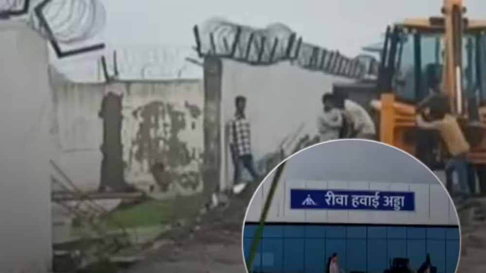 रीवा एयरपोर्ट की बाउंड्रीवॉल पहली बारिश में धराशायी, गुणवत्ता पर उठे सवाल