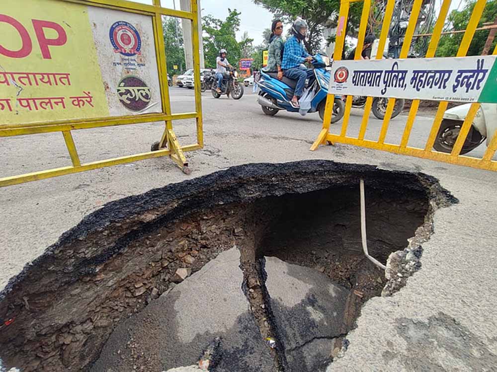 यह घटना में मेघदूत गार्डन के सामने से स्कीम नंबर 54 की तरफ जाने वाले मार्ग पर हुई थी। गड्ढे कोई जनहानि नहीं हुई, लेकिन सोशल मीडिया पर गड्ढे को लेकर लोगों ने तरह-तरह की प्रतिक्रिया दी। गड्ढे में गिरकर कोई वाहन चालक हादसे का शिकार न हो जाए, इसलिए उसके आसपास ट्रैफिक पुलिस ने बैरिकेड लगा दिए थे।