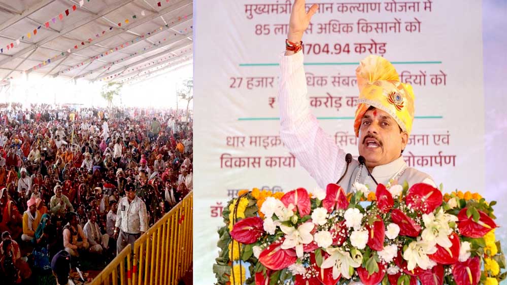 मुख्यमंत्री डॉ. मोहन यादव ने कहा है कि राज्य सरकार ने गरीब, युवा, अन्नदाता (किसान), और नारी सशक्तिकरण के लिए 4 मिशन लॉन्च किए हैं। हितग्राहियों को कई जनकल्याणकारी योजनाओं का लाभ सीधा लाभ दिया जा रहा है। प्रधानमंत्री नरेन्द्र मोदी के सबका साथ, सबका विकास के मूल मंत्र से राज्य सरकार प्रदेश को समृद्ध और सशक्त बनाने के लिए संकल्पित है। युवाओं को रोजगार, लाड़ली बहनों को आर्थिक सहायता, गरीब जरूरतमंदों के नि:शुल्क उपचार की व्यवस्था है। जनजातीय क्षेत्रों सहित प्रदेश के किसानों की आय बढ़ाने के लिए राज्य सरकार ने विभिन्न सिंचाई परियोजनाओं का जाल बिछाया है। हमारा लक्ष्य प्रत्येक खेत तक पानी पहुंचाकर प्रदेश के सिंचित रकबे को 55 लाख हेक्टेयर से बढ़ाकर 1 लाख हेक्टेयर करना है। प्रधानमंत्री मोदी ने इसके लिए केन-बेतवा लिंक और पार्वती-चंबल-कालीसिंध लिंक परियोजनाओं की शुरुआत की है। उन्होंने कहा कि धार को पीएम मित्र पार्क की सौगात केन्द्र से मिली है। यहां 2100 करोड़ से औद्योगिक पार्क आकार लेगा और लगभग 3 लाख रोजगार सृजित होंगे। धार अंचल के किसान कपास की खेती करेंगे तो उन्हें भी अधिक लाभ होगा। मुख्यमंत्री डॉ. यादव बुधवार को धार के उमरबन में आयोजित सामूहिक विवाह एवं हितलाभ वितरण कार्यक्रम को संबोधित कर रहे थे। कार्यक्रम में राज्यसभा सदस्य सुमेर सिंह सोलंकी, विधायक हीरालाल अलावा, विधायक कालू सिंह ठाकुर ,श्रीमती रंजना बघेल, चंचल पाटीदार, सरदार सिंह सहित बड़ी संख्या में हितग्राही उपस्थित थे।