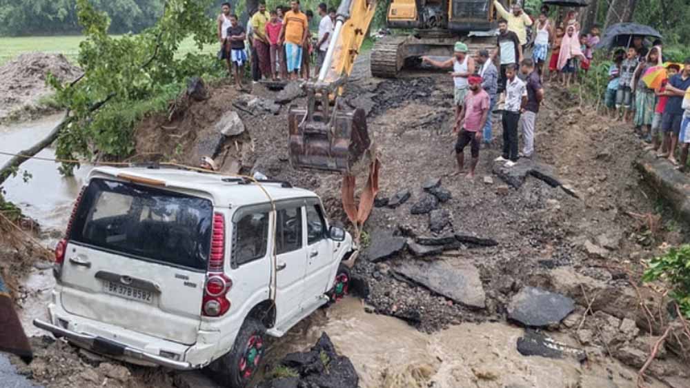 किशनगंज में मानसून की पहली बारिश ने भ्रष्टाचार की पोल खोलकर रख दी है। करोड़ों रुपये की लागत से बनी मुख्य सड़क को पहली बारिश ने ही क्षतिग्रस्त कर दिया है। इतना ही नहीं कोचाधामन के सराय पावर सब स्टेशन के पास सड़क टूटने से एक स्कॉर्पियो खाई में गिर गई। वाहन में सवार सभी यात्री चोटिल हो गए। हालांकि, सभी सुरक्षित हैं। इधर, मुख्य सड़क के टूटने से सोंथा और रहमतपारा के बीच आवागमन पूरी तरह से बाधित हो गया है। यह मार्ग जिला मुख्यालय को जोड़ने वाला महत्वपूर्ण संपर्क मार्ग है, जिससे जिला मुख्यालय से हजारों लोगों का संपर्क टूट चुका है।