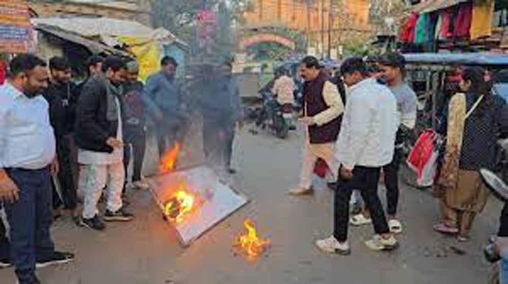 सपा संरक्षक की प्रतिमा मामले ने पकड़ा टूल, सपा युवजन सभा के कार्यकर्ताओं ने महंत राजू दास का पुतला फूंका