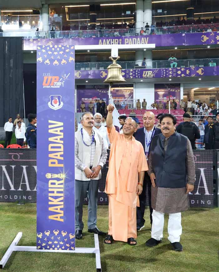 यूपी टी20 लीग के समापन में शामिल हुए सीएम योगी, घंटा बजाकर किया फाइनल मैच का शुभारंभ