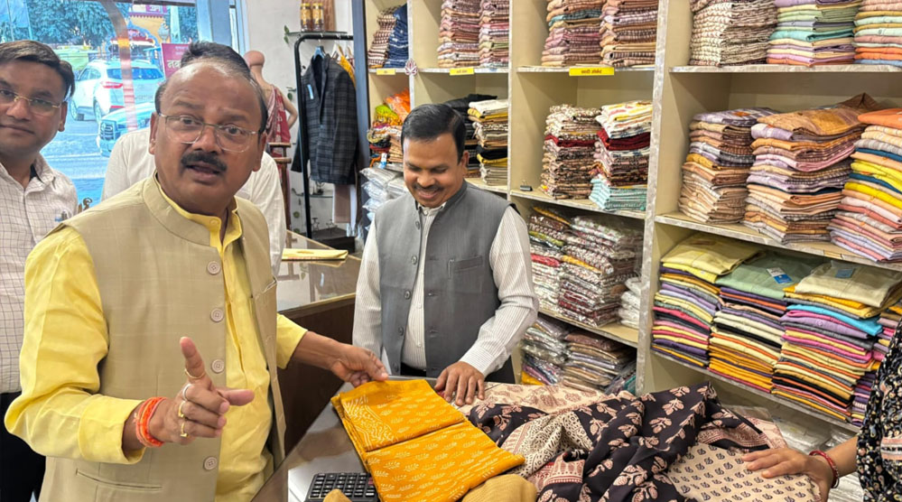 कुटीर एवं ग्रामोद्योग राज्य मंत्री (स्वतंत्र प्रभार) दिलीप जायसवाल ने लोगों से अपील की है कि वे खादी और स्वदेशी उत्पादों को अपनाएं और अपने देश की अर्थव्यवस्था को मजबूत करने में योगदान करें। राज्य मंत्री जायसवाल ने भोपाल स्थित मृगनयनी, कबीरा और विंध्यावैली स्टोर का निरीक्षण कर स्वदेशी उत्पादों की खरीदारी की। इस दौरान उन्होंने जनता से शुद्ध और उत्कृष्ट खादी व स्वदेशी उत्पाद अपनाने का अनुरोध किया।