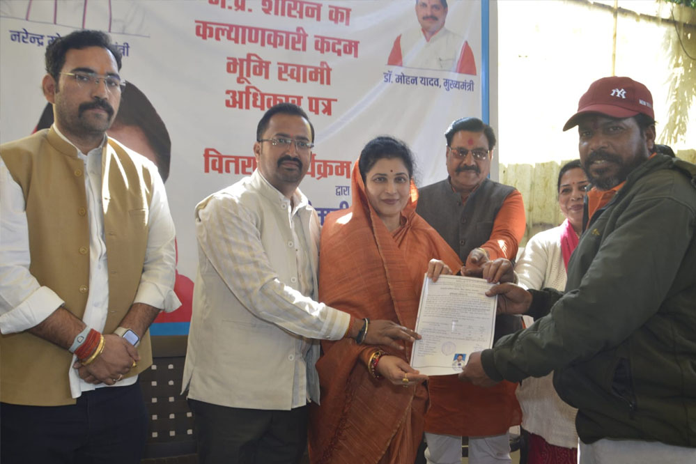 राज्य मंत्री श्रीमती गौर ने खजूरी कला बरखेड़ा बस्तियों के नागरिकों को वितरित किये अधिकार-पत्र