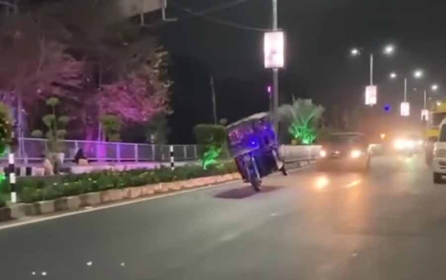भोपाल में वीआईपी रोड पर स्टंटबाजी, दो पहिए पर चलाया ई रिक्शा