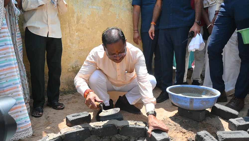 सुशासन तिहार : राज मिस्त्री बन सोखता गड्ढा के लिए मुख्यमंत्री ने जोड़ी ईट