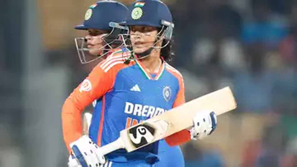 गीली आउटफील्ड के कारण टॉस निर्धारित समय पर नहीं हो पाया और करीब एक घंटा विलंब से हुआ। पहले बल्लेबाजी करने उतरी भारतीय टीम को स्मृति मंधाना और प्रतिका रावल ने अच्छी शुरुआत दिलाई। दोनों के बीच पहले विकेट के लिए 55 रन की साझेदारी हुई। मंधाना 32 गेंद में 23 रन बनाकर आउट हुईं। मंधाना ने एक चौका और एक छक्का लगाया। हरलीन 23 गेंद में 13 रन ही बना सकीं। प्रतिका रावल ने 56 गेंद में 37 रन की पारी खेली। जेमिमा खाता भी नहीं खोल सकीं। भारतीय कप्तान हरमनप्रीत कौर 24 गेंद में 9 रन बनाकर आउट हुईं। दीप्ति शर्मा ने 14 गेंद में 4 रन बनाए। अमनजोत 44 गेंद में 13 रन ही बना सकीं। स्नेह राणा ने 24 गेंद में 33 रन की दमदार पारी खेली। राणा ने घोष के साथ 8वें विकेट के लिए 88 रन जोड़े। ऋचा घोष ने 77 गेंद में 11 चौके और चार छक्के की मदद से 94 रन बनाए। श्री खाता नहीं खोल सकीं।