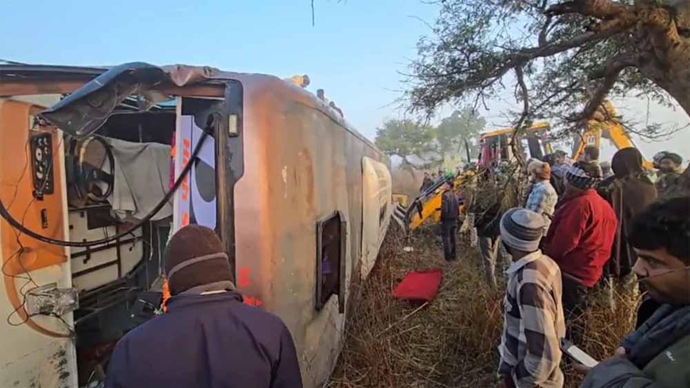 खाटू श्याम से इंदौर जा रही बस सुसनेर में पलटी, हादसे में 17 यात्री घायल हो गए, नीचे दबे पिता और बेटे को बचाया