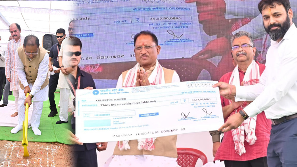इस अवसर पर एनटीपीसी लारा के महाप्रबंधक रविशंकर ने कलेक्टर रोहित व्यास को जगदेव राम उरांव कल्याण आश्रम चिकित्सालय के निर्माण के लिए 35 करोड़ 53 लाख रुपये का चेक प्रदान किया।