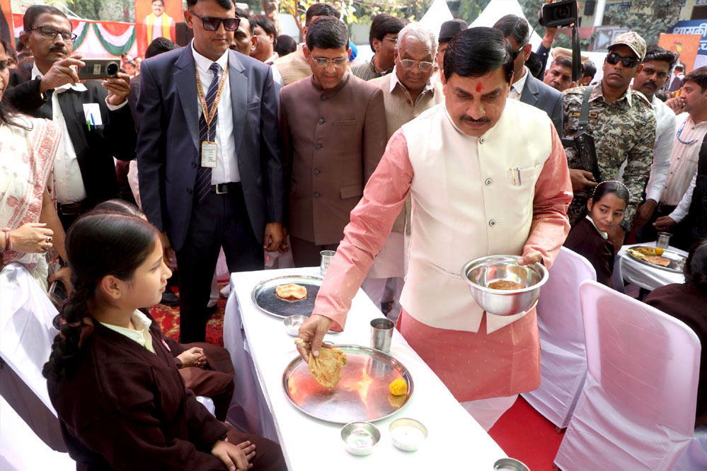 मुख्यमंत्री ने इंदौर में स्कूली बच्चों के साथ किया मध्यान्ह भोजन