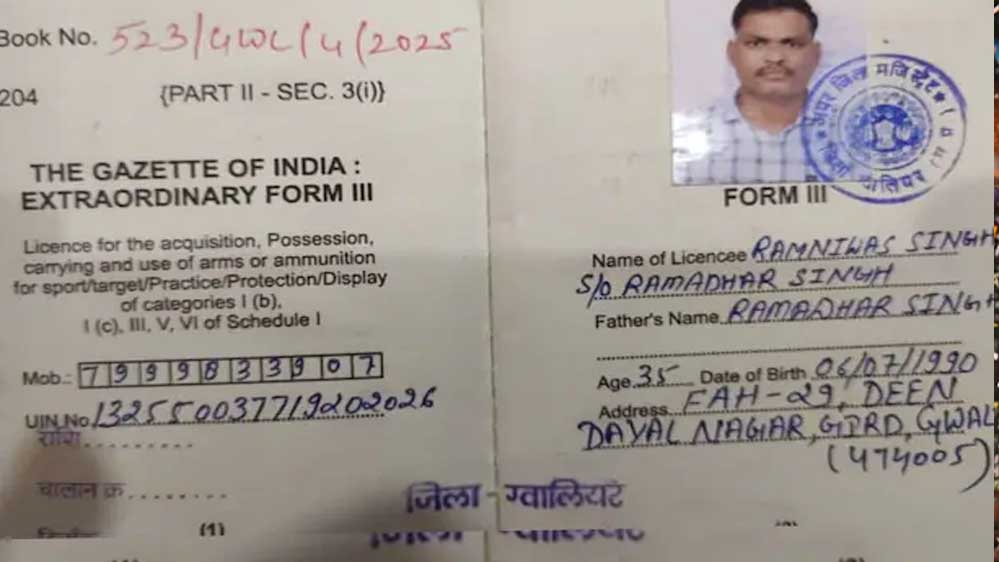मध्यप्रदेश में हथियार प्रेम और गन लाइसेंस के प्रति बढ़ती सख्ती के बीच ग्वालियर से एक चौंकाने वाला फर्जीवाड़ा सामने आया है। यहां फर्जी गन लाइसेंस डायरी बनाकर लोगों को ठगा जा रहा है। इतना ही नहीं, इन नकली लाइसेंसों पर एडीएम की सील और सिग्नेचर तक लगा दिए गए। सबसे हैरानी की बात यह है कि इन फर्जी दस्तावेजों में यूनिक ID नंबर तक बना दिए गए हैं, मानो ये असली हों।