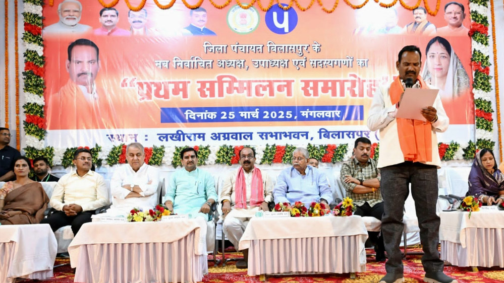 केन्द्रीय आवासन और शहरी कार्य राज्य मंत्री तोखन साहू तथा उप मुख्यमंत्री अरुण साव आज बिलासपुर जिला पंचायत के प्रथम सम्मिलन में शामिल हुए। साहू और साव के मुख्य आतिथ्य में आयोजित समारोह में जिला पंचायत के नवनिर्वाचित अध्यक्ष, उपाध्यक्ष और सदस्यों ने शपथ ली। बिलासपुर के स्वर्गीय लखीराम अग्रवाल ऑडिटोरियम में आयोजित सम्मिलन में विधायकगण सर्वधरमलाल कौशिक, धर्मजीत सिंह और सुशांत शुक्ला भी शामिल हुए। जिला पंचायत के नवनिर्वाचित अध्यक्ष राजेश सूर्यवंशी, उपाध्यक्ष श्रीमती ललिता संतोष कश्यप और सदस्यों ने इस गरिमामय समारोह में शपथ ग्रहण किया।