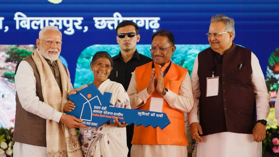 प्रधानमंत्री नरेंद्र मोदी ने आज बिलासपुर के मोहभट्ठा में दूरस्थ अंचलों के तीन आदिवासी परिवारों को खुद अपने हाथों से नए आवासों की चाबी सौंपी। बीजापुर जिले के चेरपाल पंचायत की श्रीमती सोमारी पुनेम, कबीरधाम जिले के ग्राम हाथीडोब के दल्लुराम बैगा और जशपुर जिले के करदना पंचायत के पहाड़ी कोरवा जगतपाल राम को जब प्रधानमंत्री मोदी ने प्रतीक रूप में मंच से उनके नवनिर्मित पक्के आवासों की चाबी सौंपी तो उनकी खुशियां देखते ही बनती थी।