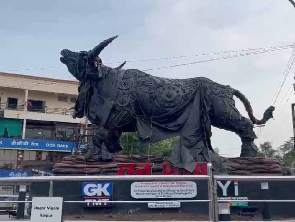 राजधानी रायपुर के पंडरी मार्ग स्थित खालसा स्कूल के सामने बने चौक पर प्रदेश के राजकीय पशु वन भैंसा की प्रतिमा स्थापित किए हुए चार महीने से अधिक समय बीत चुके हैं, लेकिन अब तक उसका अनावरण नहीं किया गया है। मेटल से बनी यह प्रतिमा प्लास्टिक कवर से ढंकी हुई है, जो अब फटने लगा है और जगह-जगह से मूर्ति झांकने लगी है। पूर्व वन मंत्री मोहम्मद अकबर ने इसे लेकर राज्य सरकार की नीयत पर सवाल खड़े किए हैं।