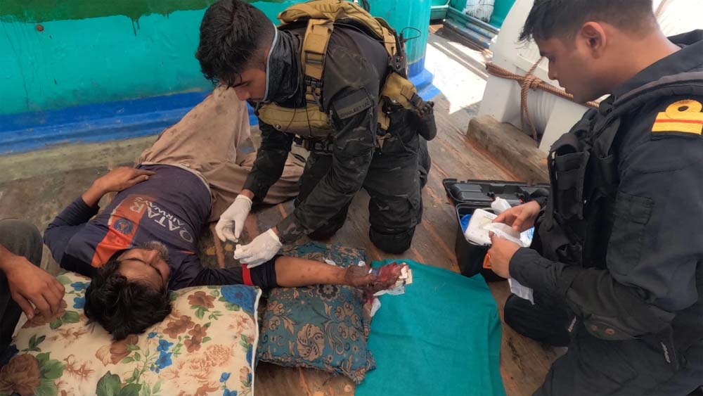 INS त्रिकंड ने घायल चालक दल के सदस्य को चिकित्सा सहायता देने के लिए तुरंत अपना रास्ता बदला. FV अब्दुल रहमान हंजिया के चालक दल में 11 पाकिस्तानी (9 बलूच और 2 सिंधी) और 5 ईरानी कर्मी शामिल थे. घायल व्यक्ति पाकिस्तानी (बलूच) नागरिक था. उसके हाथ में कई फ्रैक्चर और गंभीर चोटें आई थीं, जिसके कारण बहुत ज्यादा खून बह गया था.