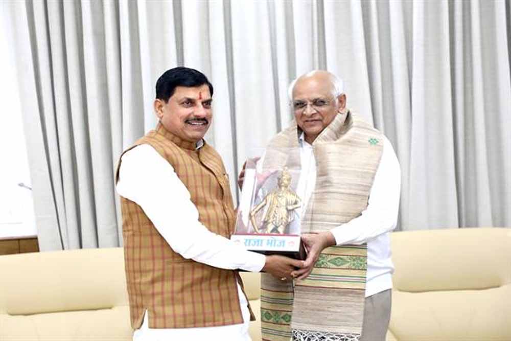 मुख्यमंत्री डॉ. मोहन यादव ने सोमवार की शाम स्टेट हैंगर भोपाल पर गुजरात के मुख्यमंत्री श्री भूपेंद्र पटेल और गुजरात के गृहमंत्री श्री हर्ष संघवी के आगमन पर उनका पुष्प-गुच्छ और अंगवस्त्र से स्वागत किया। मुख्यमंत्री डॉ. यादव ने गुजरात के मुख्यमंत्री पटेल और गृह मंत्री संघवी को राजा भोज की प्रतिमा भेंट की।