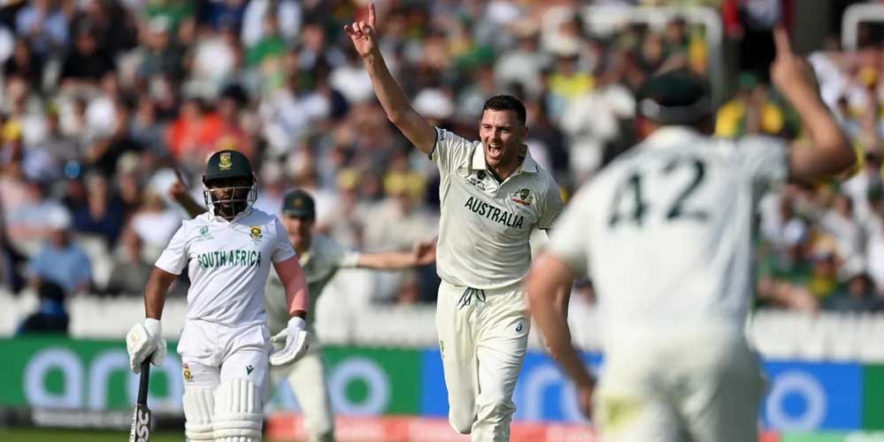 रबाडा की इस घातक गेंदबाजी के बाद ऑस्ट्रेलिया के लिए मिचेल स्टार्क चमके। दिन का खेल खत्म होने तक ऑस्ट्रेलिया ने साउथ अफ्रीका के 43 रन पर 4 विकेट गिराए। स्टार्क को दो तो कमिंस और हेजलवुड को 1-1 सफलता मिली। साउथ अफ्रीका अभी भी 169 रन पीछे है।