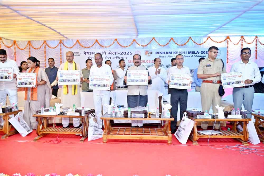उप मुख्यमंत्री तथा कोरबा जिले के प्रभारी मंत्री अरुण साव ने आज छत्तीसगढ़ में रेशम उत्पादन को बढ़ावा देने रेशम कृषि मेला-सह-मेरा रेशम, मेरा अभिमान का शुभारंभ किया। उन्होंने कार्यक्रम में रेशम उत्पादक किसानों को चेक और प्रशस्ति पत्र देकर सम्मानित किया। अपने उद्बोधन में श्री साव ने कहा कि मेरा रेशम, मेरा अभिमान कार्यक्रम का उद्देश्य किसानों को आधुनिक मशीनों के संबंध में जानकारी प्रदान करना, प्रशिक्षण उपलब्ध कराकर हुए रेशम उत्पादन से जोड़ना ही नहीं है, बल्कि आमदनी बढ़ाना, आत्मनिर्भर बनाकर प्रदेश और देश को आर्थिक प्रगति की राह में आगे ले जाना भी है। अभी रेशम उत्पादन में छत्तीसगढ़ देश में दूसरे नंबर पर है, इसे पहले पायदान पर लेकर जाना है। श्री साव ने इस आयोजन को मील का पत्थर बताते हुए इसमें सभी की सहभागिता को आवश्यक बताया। उन्होंने किसानों के प्रशिक्षण तथा मेरा रेशम, मेरा अभिमान कार्यक्रम की प्रगति के लिए जिला खनिज संस्थान न्यास से एक करोड़ रुपए देने की घोषणा की।