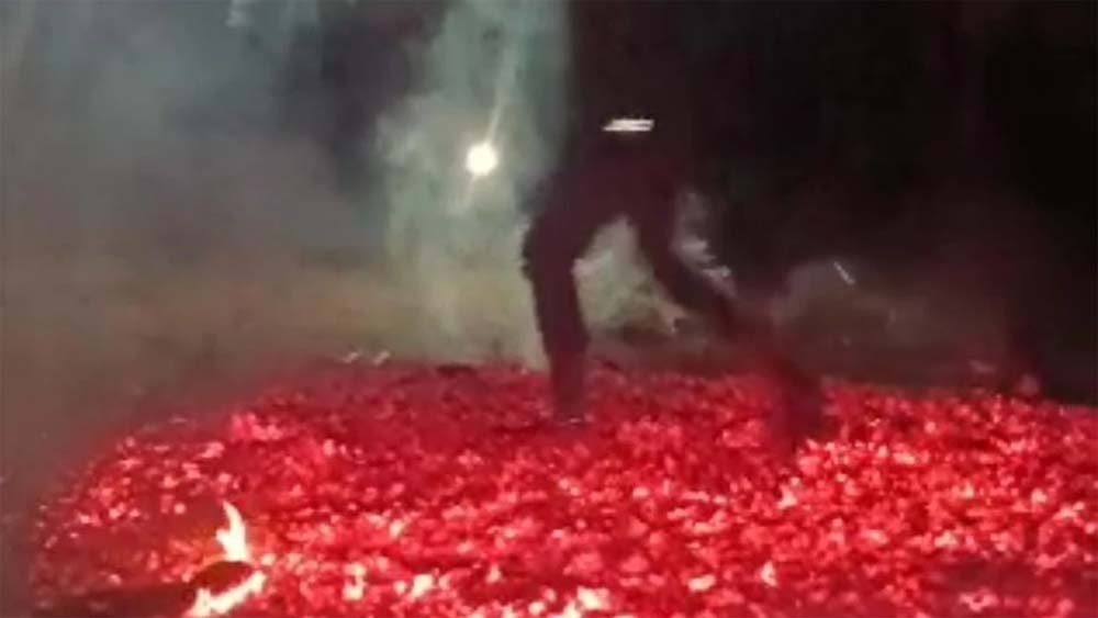 छत्‍तीसगढ़ की परंपरा : गांव में सुख-षांति स्थापित हो इसलिए गांव वाले होलीका दहन के बाद धधकते अंगारों पर नंगे पैर चलते है