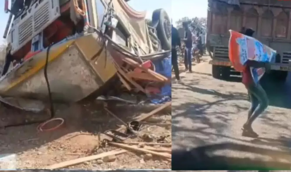 वाशिंग पाउडर और साबुन से भरा ट्रक अनियंत्रित होकर पलटा, लूटने के लिए दौड़ पड़े लोग