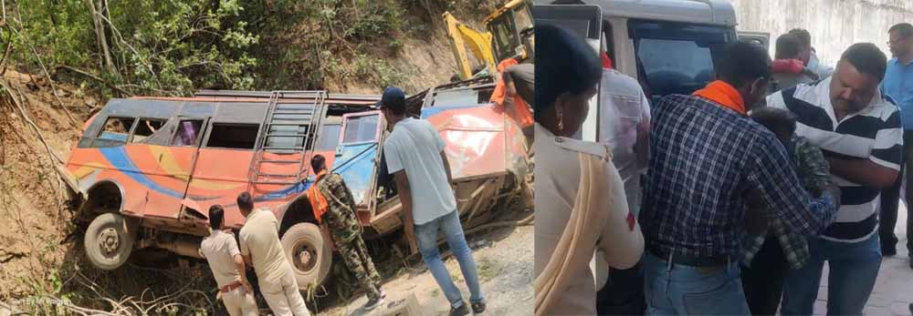 बारातियों से भरी अनियंत्रित बस गहरी खाई गिरी, तीन की मौत, कई घायल