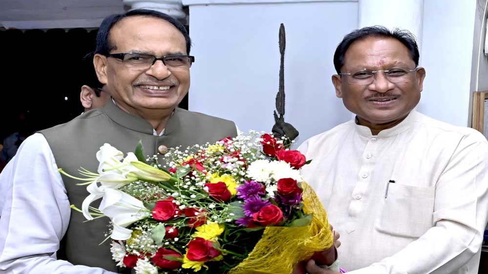 मुख्यमंत्री विष्णुदेव साय से छत्तीसगढ़ प्रवास पर आए केंद्रीय ग्रामीण विकास एवं कृषि व किसान कल्याण मंत्री शिवराज सिंह चौहान ने सौजन्य मुलाकात की। मुख्यमंत्री साय ने चौहान का छत्तीसगढ़ में स्वागत करते हुए उन्हें बस्तर आर्ट का प्रतीक चिन्ह व शॉल भेंट किया। मुख्यमंत्री साय ने छत्तीसगढ़ की पावन धरा पर केंद्रीय मंत्री शिवराज सिंह चौहान का हार्दिक स्वागत एवं अभिनंदन करते हुए कहा कि गरीब, किसान एवं गांव के कल्याण के लिए आपका समर्पण हम सबके लिए प्रेरणादायी है। आपके अनुभव और मार्गदर्शन से डबल इंजन सरकार का संकल्प और सशक्त होगा।