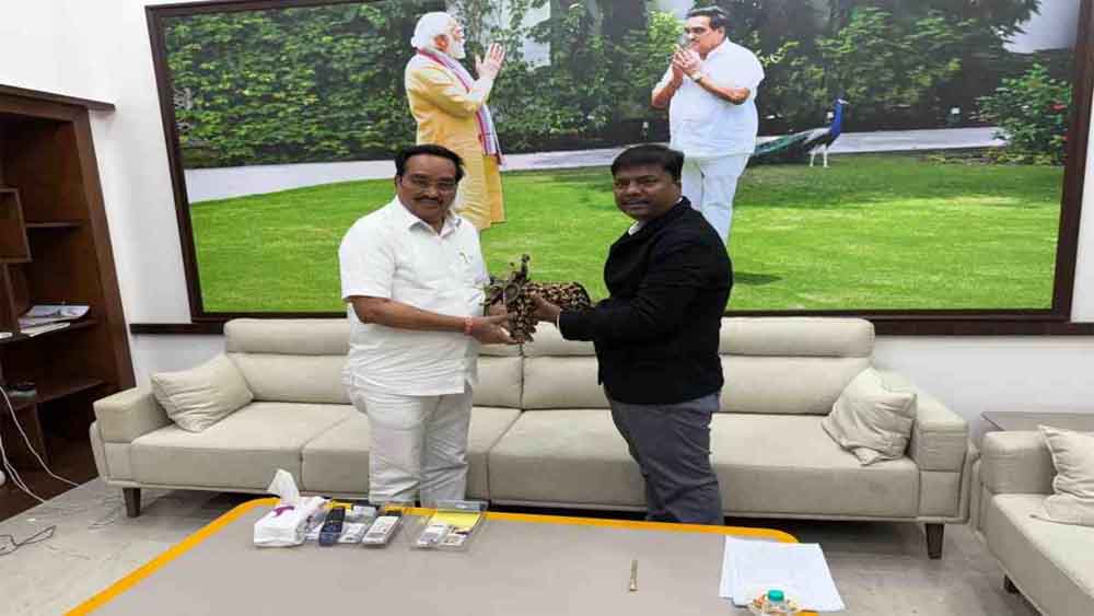 रायपुर. एक दिवसीय दिल्ली प्रवास के दौरान छत्तीसगढ़ के जल संसाधन मंत्री केदार कश्यप ने केंद्रीय जल शक्ति मंत्री सीआर पाटिल से मुलाकात की. मंत्री कश्यप ने केंद्रीय मंत्री पाटिल काे बस्तर के ढोकरा आर्ट से निर्मित हाथी और पुष्प गुच्छ देकर आत्मीय भेंट की.