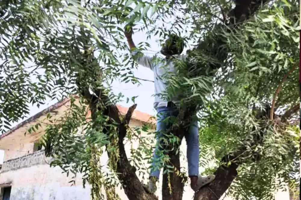 एमपी स्कूल का अनोखा दृश्य: शिक्षक पेड़ पर चढ़कर कर रहे बच्चों की उपस्थिति दर्ज