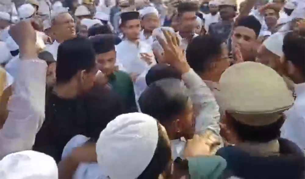 ईदगाह मैदान में नमाजियों को जाने से रोकने पर हंगामा, पुलिस से नोकझोंक