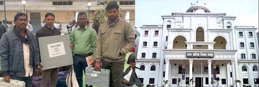 नगरीय निकाय चुनाव : कड़ी सुरक्षा के बीच ईवीएम लेकर मतदान दल हो रहे रवाना