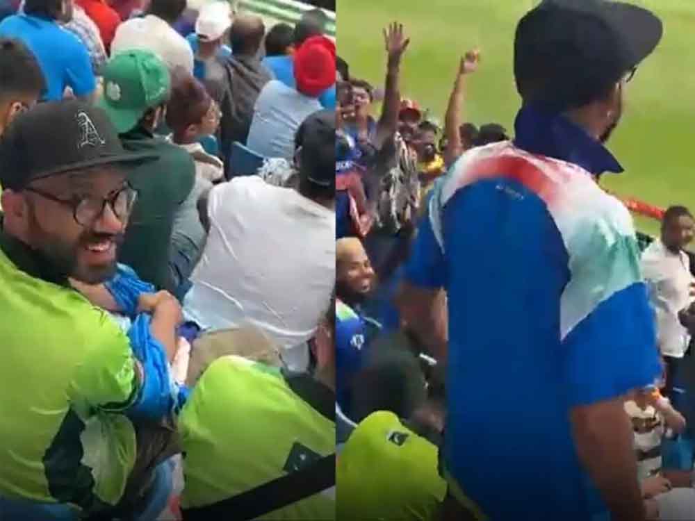 सोशल मीडिया पर वायरल वीडियो में देखने को मिल रहा है कि एक पाकिस्तानी फैन IND vs PAK मैच के दौरान भारत की नीली जर्सी पहन रहा है। वीडियो बनाता हुआ शख्स कहता नजर आ रहा है, ‘टीम चेंज करता हुआ बंदा…पाकिस्तान का बंदा पहन रहा है इंडिया की जर्सी।’ इसके बाद वहां मौजूद सभी भारतीय फैंस उसका सपोर्ट करते नजर आए और पाकिस्तानी फैन ने भारत की जर्सी पहन भी ली।