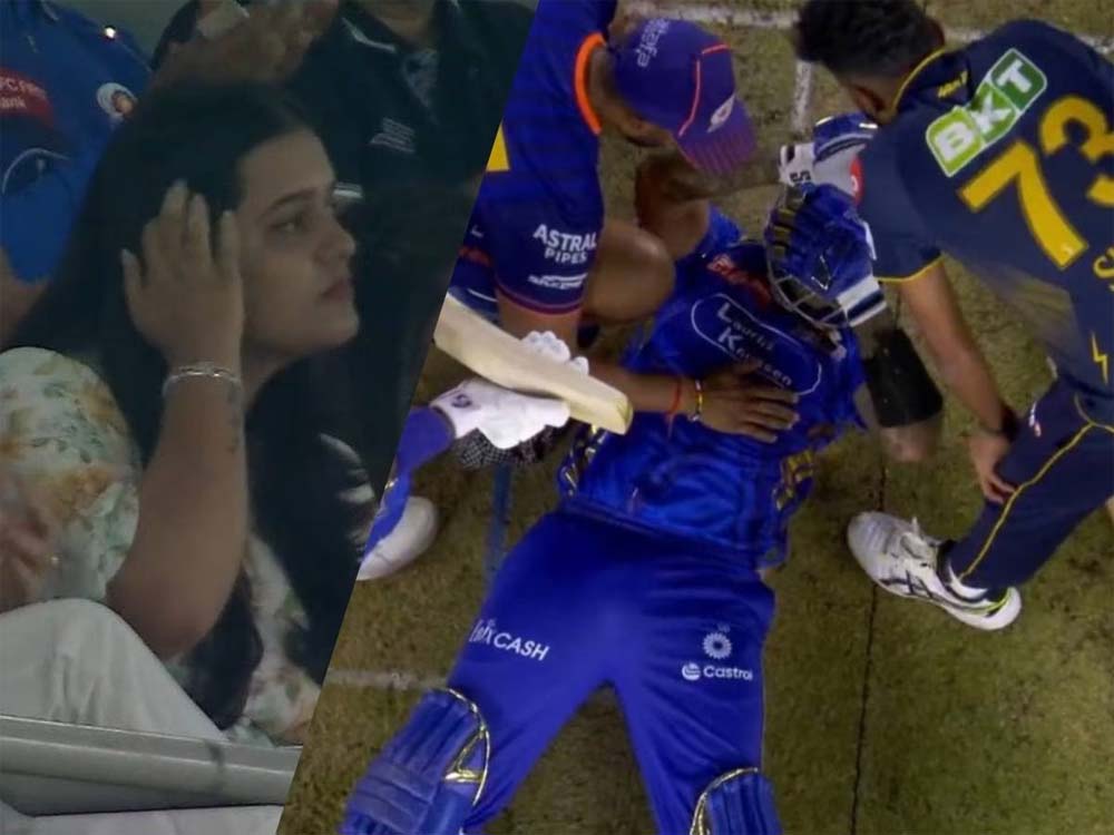 मुंबई इंडियंस के बल्लेबाज सूर्यकुमार यादव गुजरात टाइटन्स के खिलाफ आईपीएल 2025 के 9वें लीग मैच में शानदार लय में नजर आ रहे थे। वे ताबड़तोड़ बल्लेबाजी करके मुंबई इंडियंस को मैच में जीवित किए हुए थे। हालांकि, एक गेंद उनके सीधे हेलमेट पर लगी और वे जमीन पर गिर पड़े। जल्द ही फीजियो और डॉक्टर मैदान पर आ गए। इस दौरान उनकी पत्नी देविशा का रिएक्शन देखने लायक था। वह बहुत ही मायूस नजर आईं। हालांकि, जल्द ही वे बल्लेबाजी के लिए तैयार हो गए, लेकिन उनकी एकाग्रता भंग हो गई और वे ज्यादा देर क्रीज पर टिक नहीं पाए।
