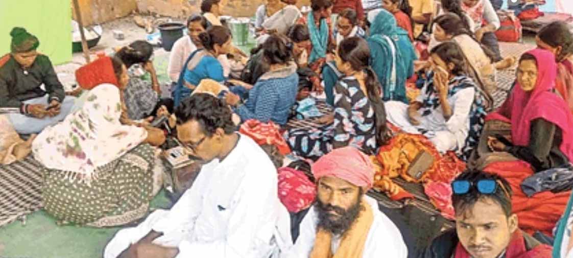तानसेन चौक में धरने पर बैठी फ्लोरा मैक्स की ठगी महिलाएं व स्वजन
