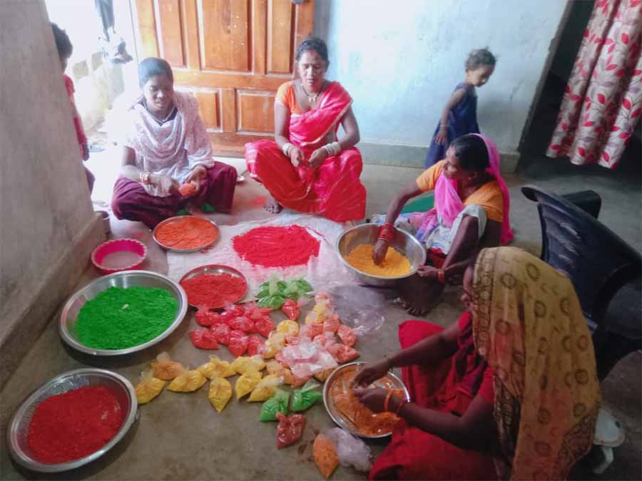 स्व सहायता समूह की महिलाएं बना रही होली के लिए फूलों और सब्जियों से हर्बल गुलाल