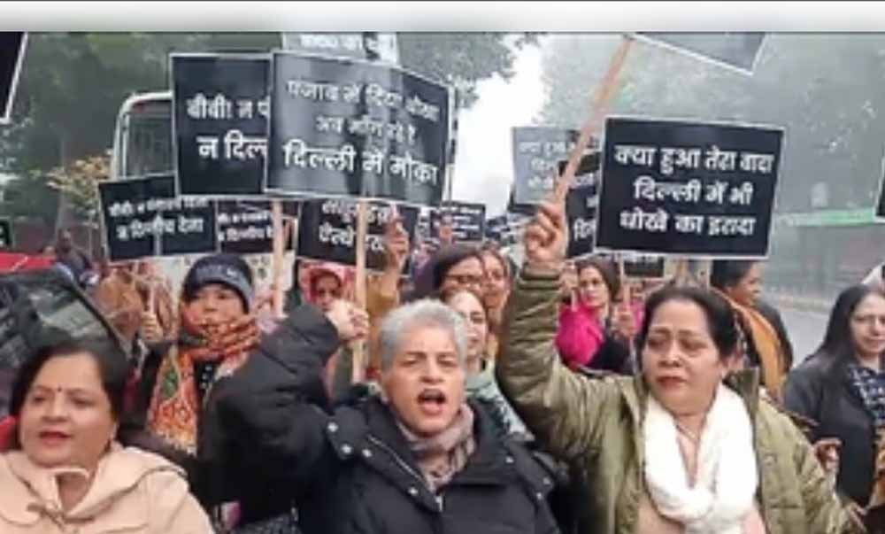 महिलाओं ने दिल्ली पहुंचकर किया केजरीवाल के घर का घेराव, चुनाव में पंजाब सरकार के झूठे वादों को लेकर किया प्रदर्शन