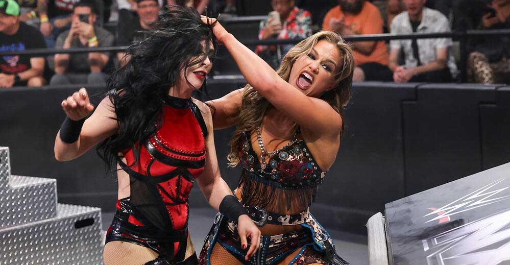 जैदा पार्कर ने नटाल्या को रिंग से बाहर कर दिया।