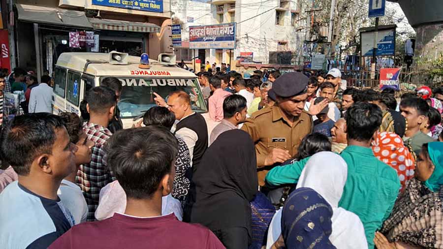 थाने पर जुटी भीड़, पुलिस के खिलाफ की नारेबाजी